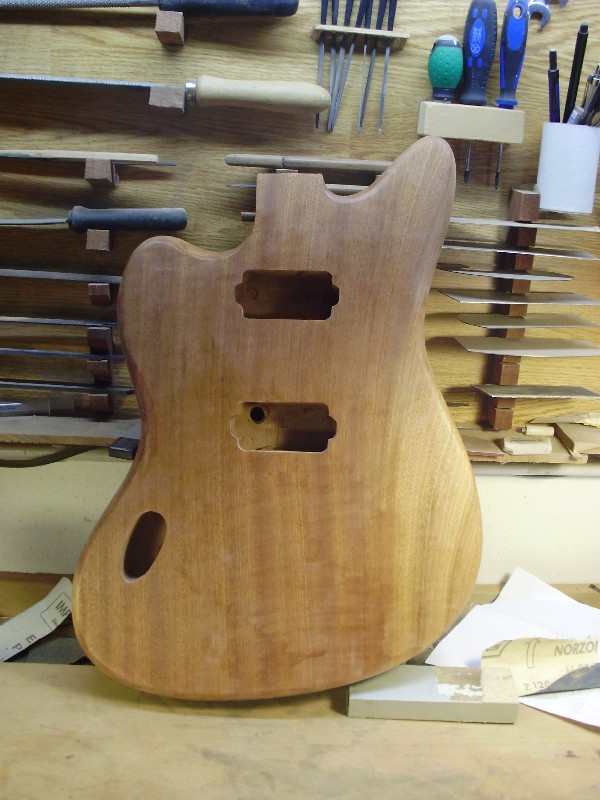 Tra i lavori che sto effettuando in questo periodo , sicuramente il più curioso è la costruzione di una chitarra elettrica molto custom. In pratica la copia esatta, solo nei profili , di una fender Jaguar.