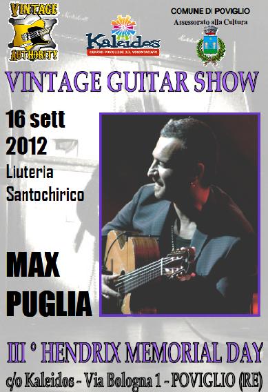 La sua sarà un esibizione breve ma coinvolgente dove qualsiasi appassionato di chitarra, indipendentemente dal genere, non può che incantarsi dinanzi al virtuosismo espressivo che questo musicista riesce ad interpretare .La musica del compositore e chitarrista Max Puglia è un crossover. Le tradizioni esotiche flamenco‐gitane, quelle Medio Orientali, e quelle del folk mediterraneo si intrecciano con trame di Classica, jazz e ritmi latini, musica al tempo stesso sofisticata e accessibile. E' sensuale, passionale, romantica e inevitabilmente contagiosa