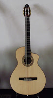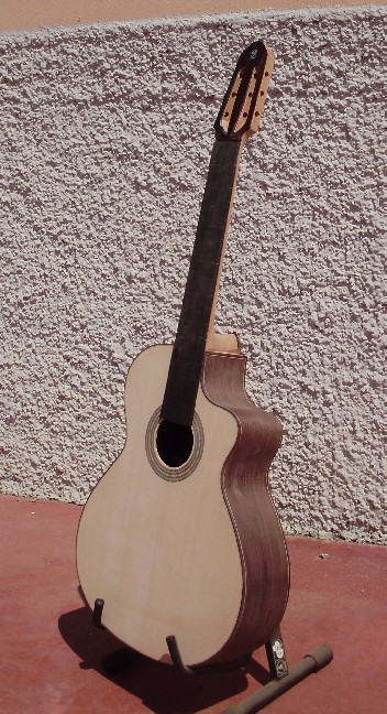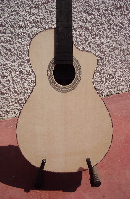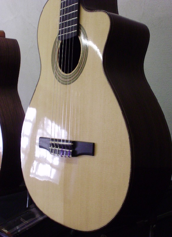 il diapason di 65 cm e l'action è ibrida tra una flamenco e una concerto.
